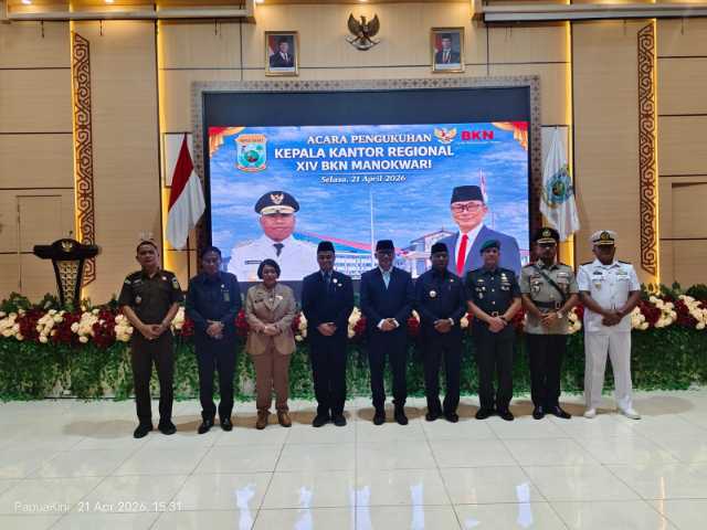 Gubernur Papua Barat, Drs Dominggus Mandacan MSi, resmi mengukuhkan Basuki Ari Wicaksono sebagai Kepala Kantor Regional XIV Badan Kepegawaian Negara (BKN) Manokwari.